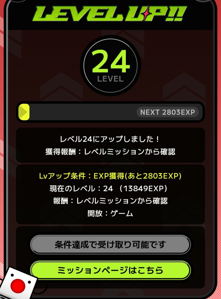 アカウントのレベルアップによって、サイト内で使える機能が順次解放される仕組みです。