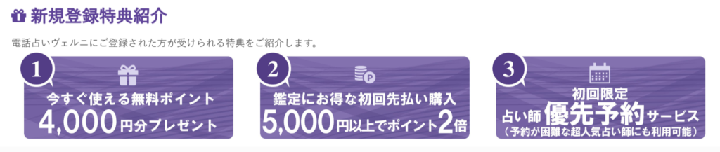 「ヴェルニ」では新規登録特典として初回鑑定4,000円分が無料となります!